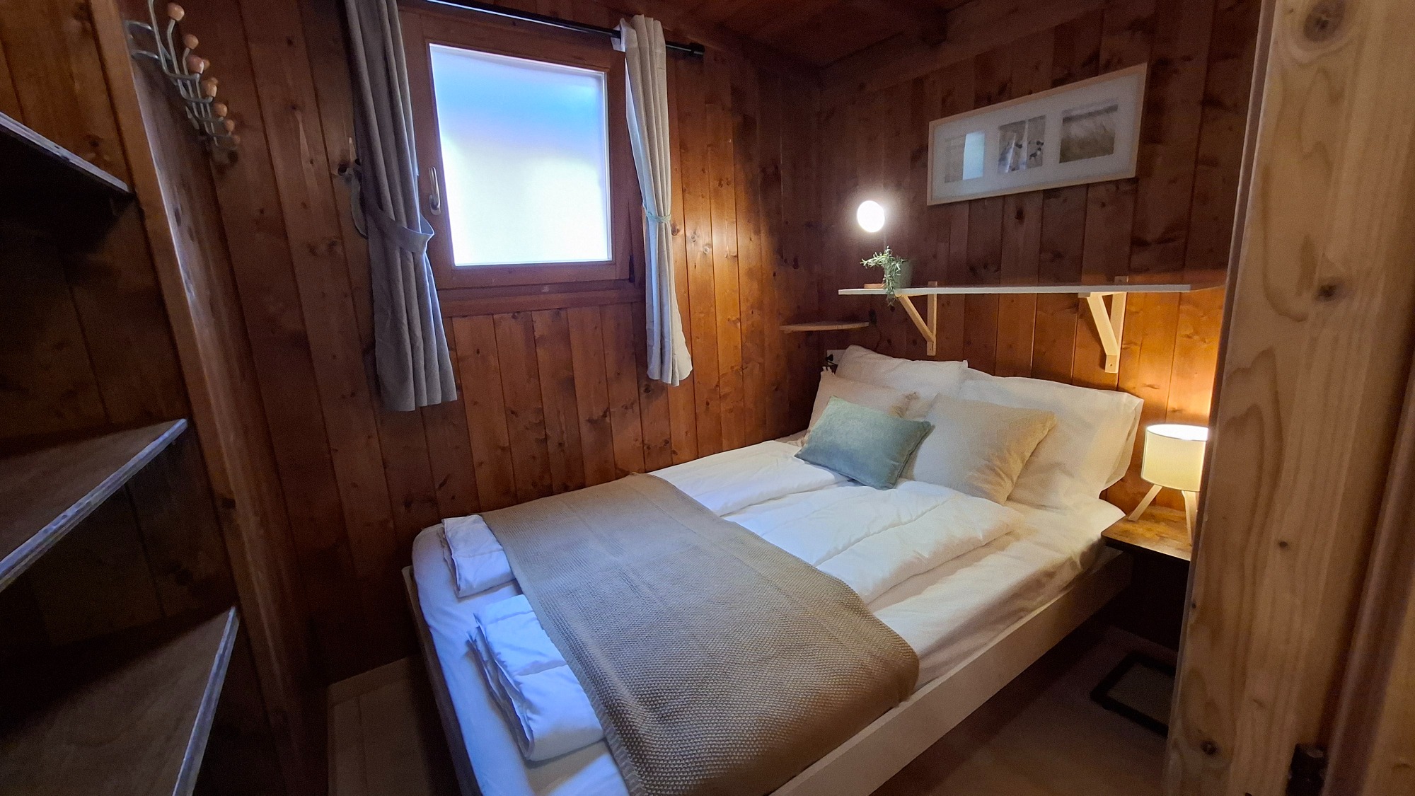 De chalet is de 6de in de straat vanaf het meer! Vanaf de veranda heb je uitzicht over de bergen van Zwitserland.