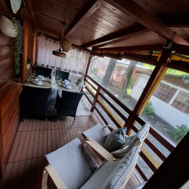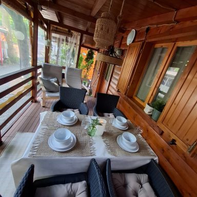 - – Grote overdekte veranda met tuinset.